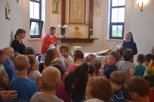 Podczas mszy świętej wszyscy modliliśmy się o potrzebne łaski dla pani Dominiki. „Niech płomienie Bożej Miłości nieustannie wzrastają w Twoim sercu i niech niszczą to wszystko, co nie jest od Jezusa Chrystusa”.