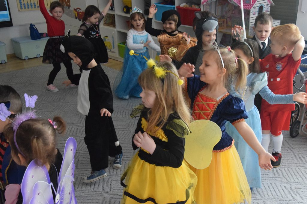 Bal Karnawałowy okazał się niezwykłym wydarzeniem dostarczającym wielu pozytywnych przeżyć i radości. Piękne stroje dzieci przyciągały wzrok personelu przedszkola, a zabawy w salach wzmacniały kondycję ruchową oraz dostarczały sporo wesołych emocji.