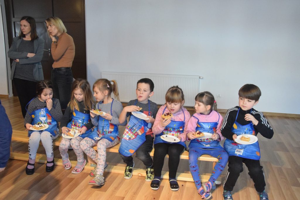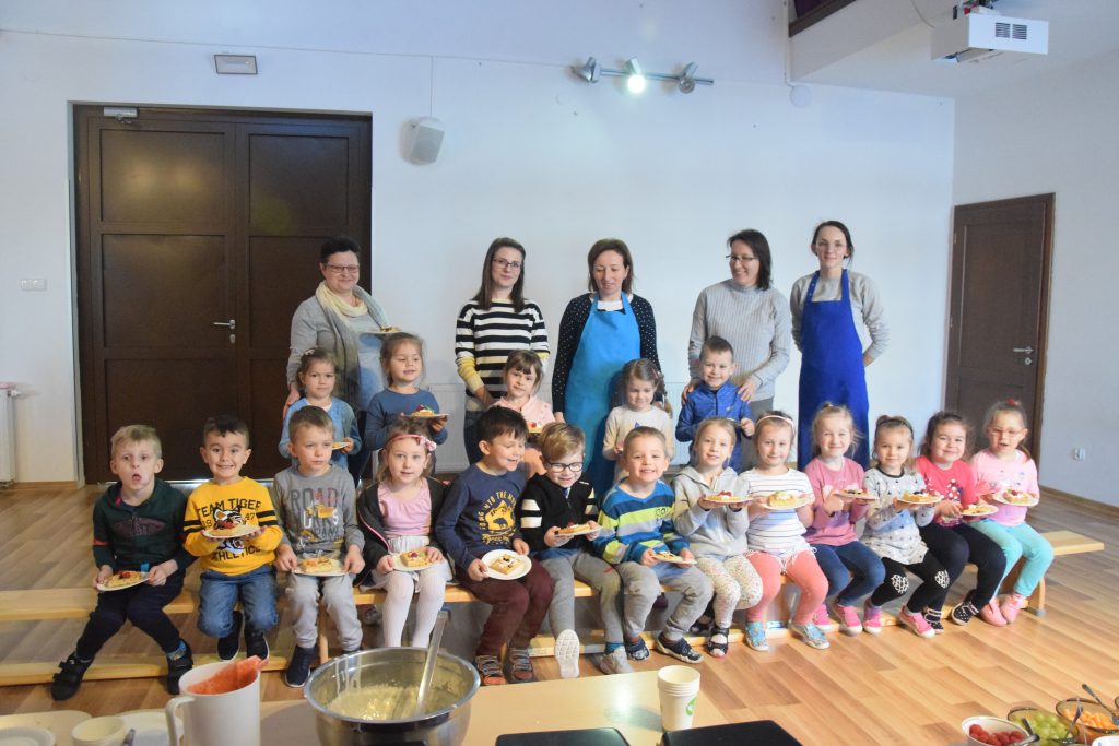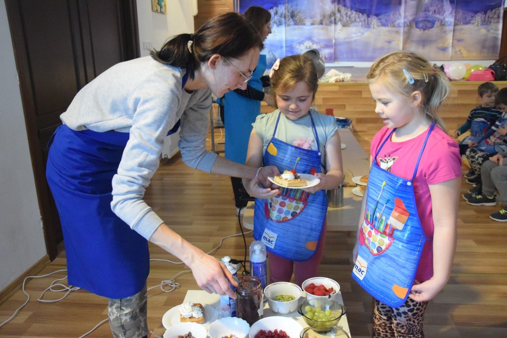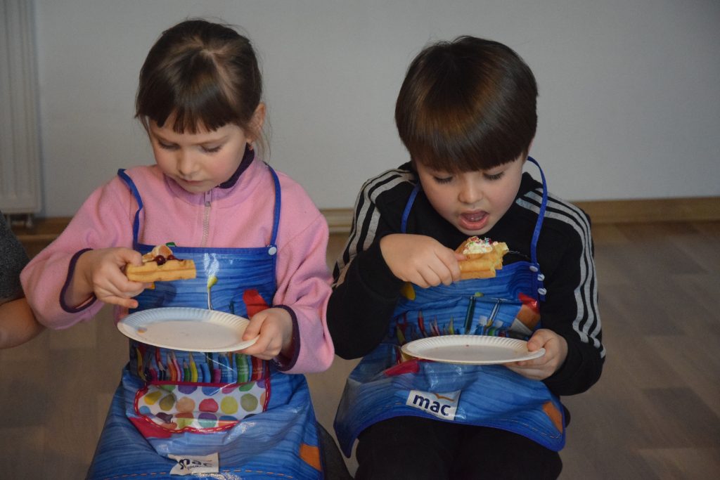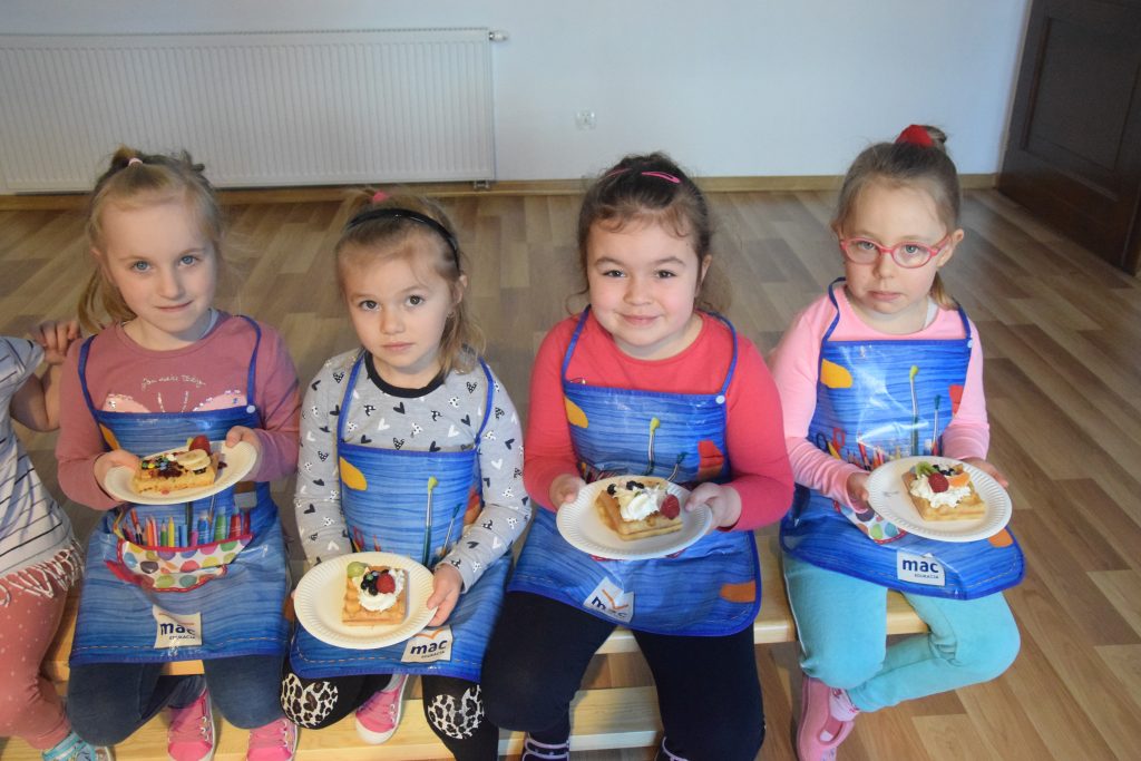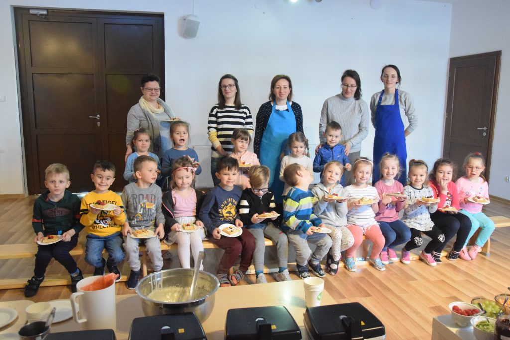 Pani Dominika i pani Marta przygotowały dla wszystkich przedszkolaków warsztaty kulinarne. Dzieci bardzo chętnie brały udział w robieniu gofrów i mufinek. Było wesoło i pysznie.