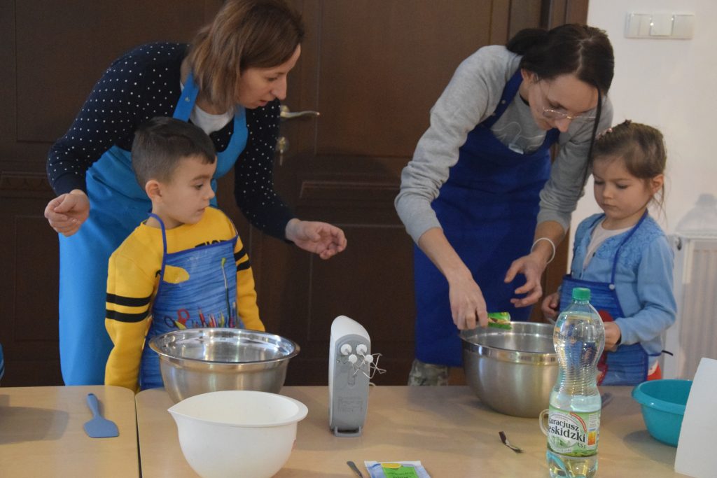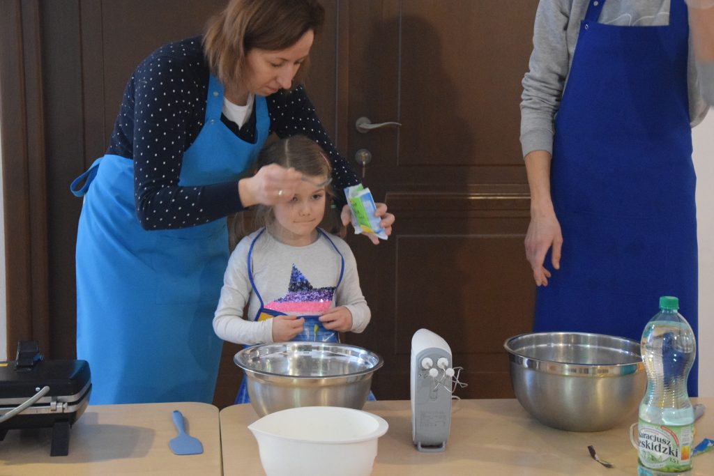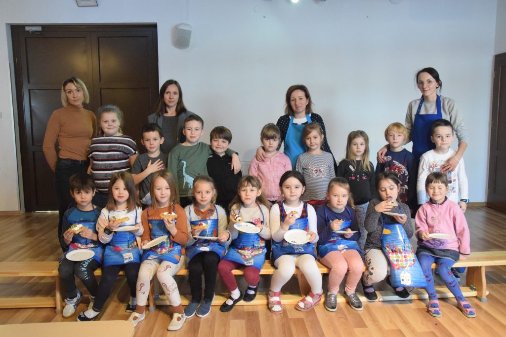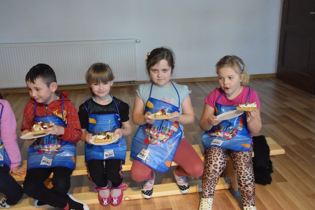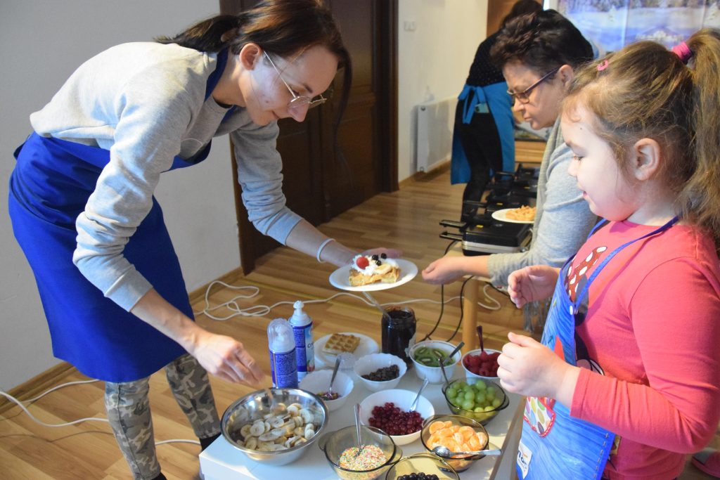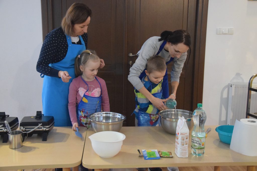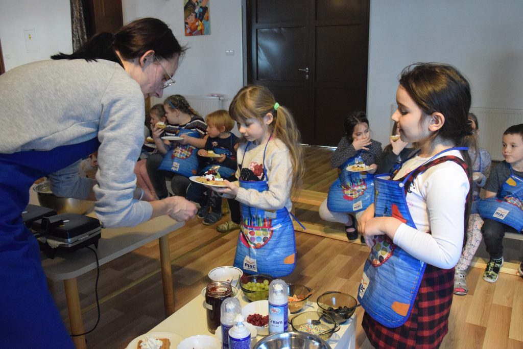 Pani Dominika i pani Marta przygotowały dla wszystkich przedszkolaków warsztaty kulinarne. Dzieci bardzo chętnie brały udział w robieniu gofrów i mufinek. Było wesoło i pysznie.