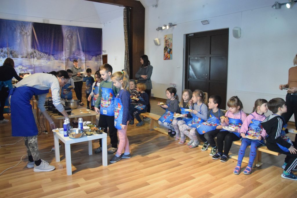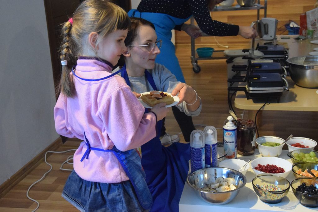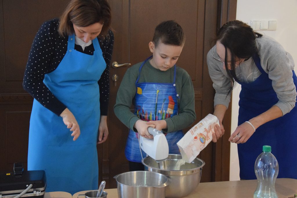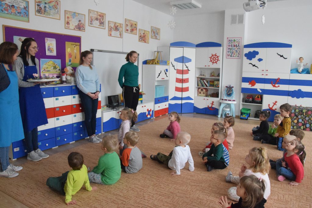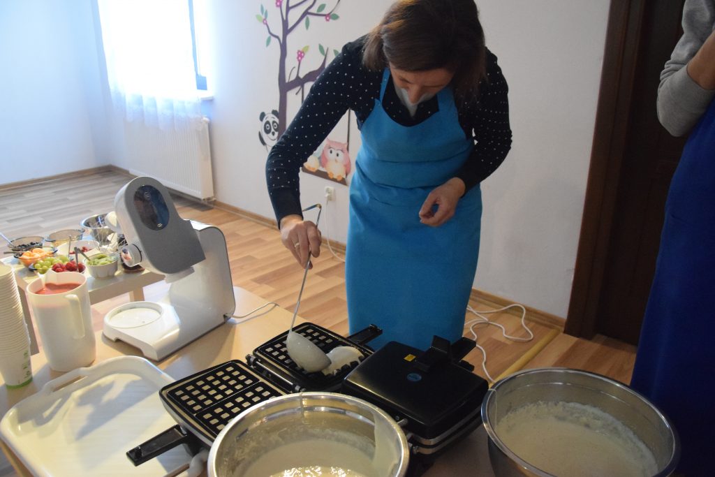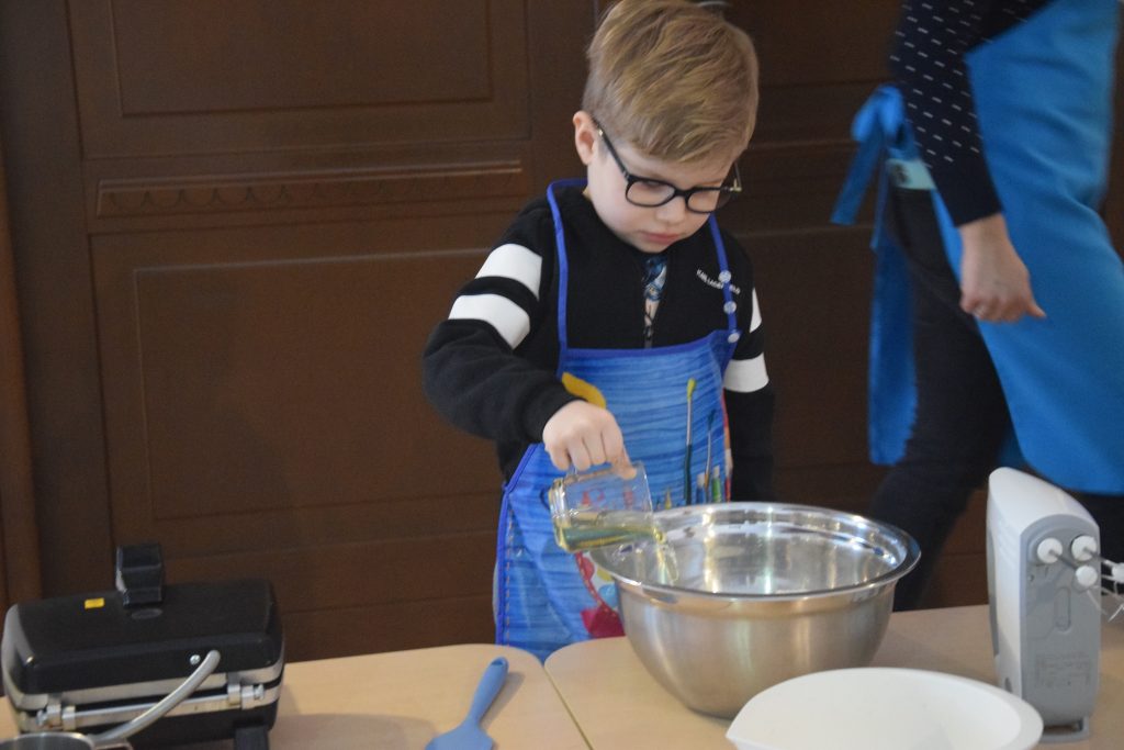 Pani Dominika i pani Marta przygotowały dla wszystkich przedszkolaków warsztaty kulinarne. Dzieci bardzo chętnie brały udział w robieniu gofrów i mufinek. Było wesoło i pysznie.