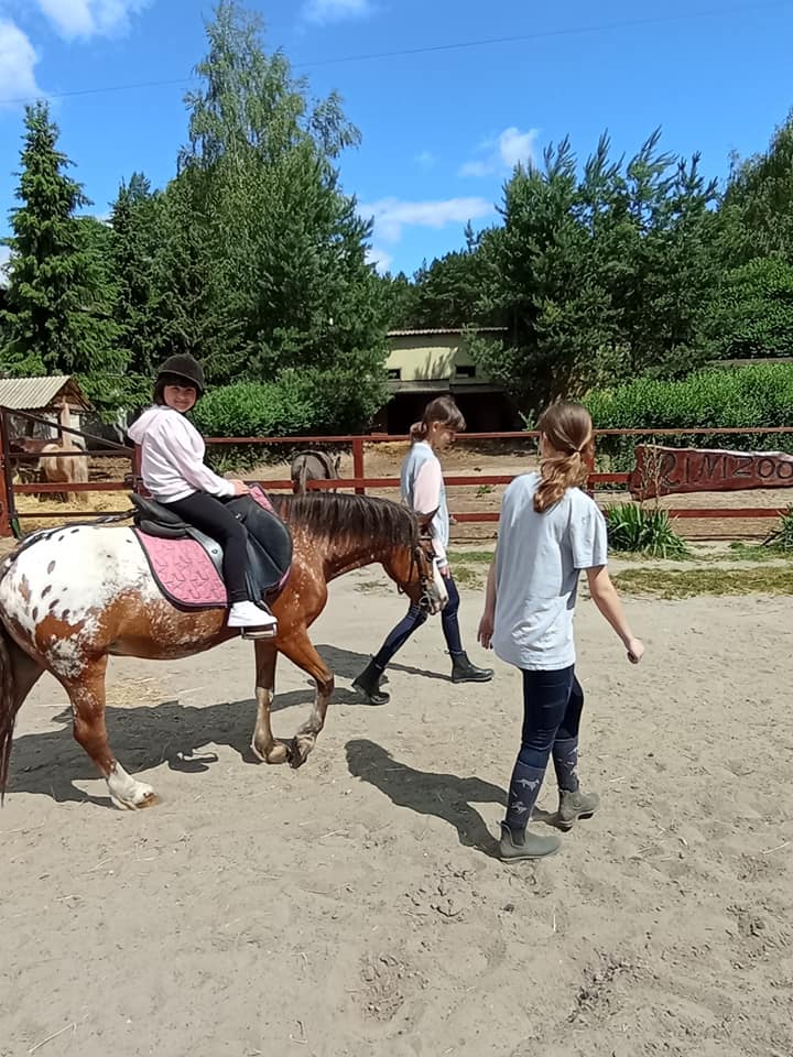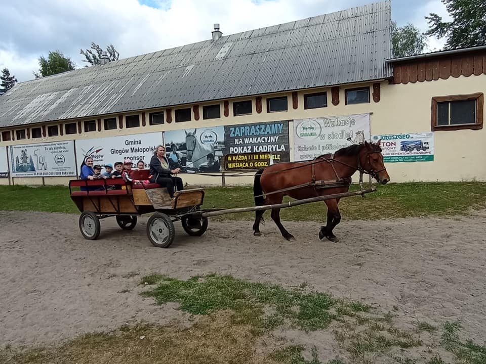 Dzieci miały okazję zobaczyć stadninę koni, pojeździć dorożką po pobliskim lasku, indywidualnie „pogalopować” na różnych kucykach, a nawet na dużych koniach. Na zakończenie wszyscy wspólnie piekli kiełbaski i bawili się na placu zabaw.
