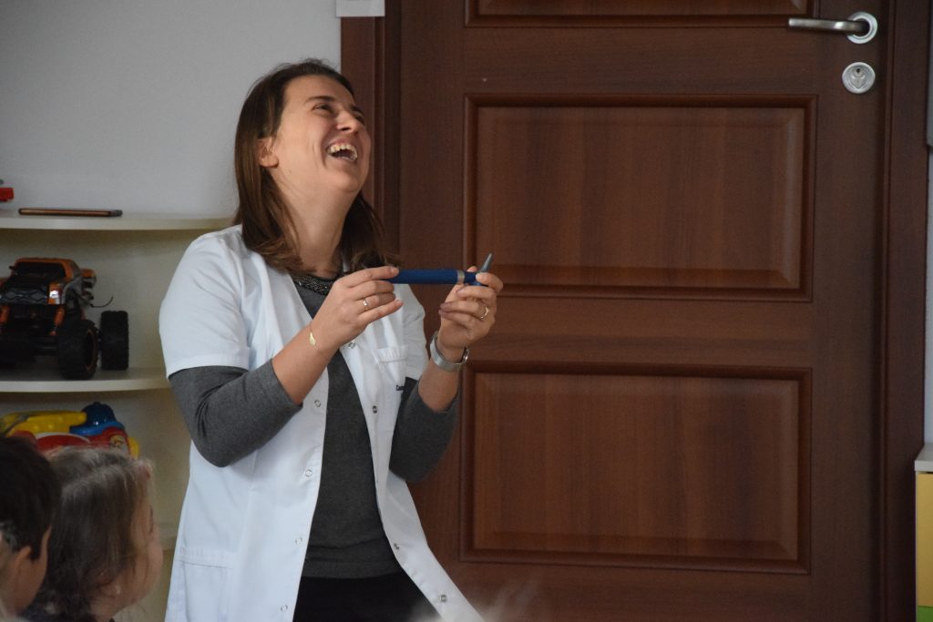 Rozmawiając o różnych zawodach naszych rodziców Kwiatki Bożej Matki zaprosiły do przedszkola panią Anetę Ruda, która jest lekarzem. Pani Aneta pięknie opowiedziała na czym polega jej praca i z jakimi chorobami dzieci spotyka się najczęściej. Nasz gość pokazał również wiele przedmiotów medycznych, które ułatwiają badanie i rozpoznawanie choroby. Ale najważniejsze w tym spotkaniu były wskazówki