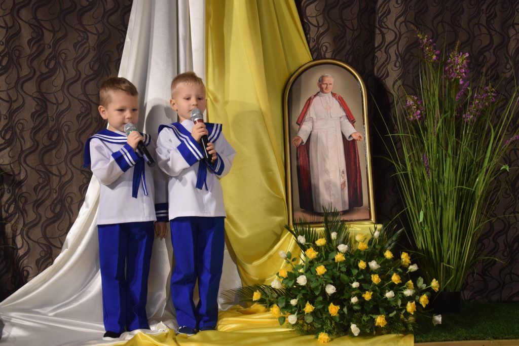 29 listopada w naszym przedszkolu odbył się Konkurs Piosenki o Janie Pawle II. Wszystkie dzieci zaprezentowały się wspaniale a jury miało bardzo trudne zadanie, aby wyłonić zwycięzcę, dlatego też po drugich naradach postanowiono przyznać pierwsze miejsce wszystkim uczestnikom. Warto więc w tym miejsce przypomnieć słowa Jana Pawła II: „Pragnę… wypowiedzieć tę radość, jaką dla każdego