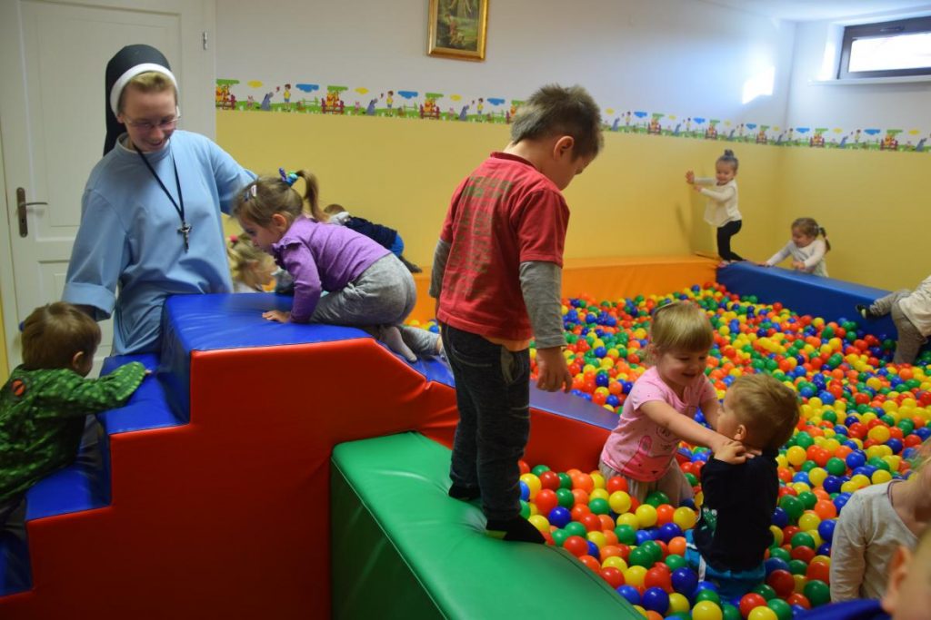 Dzieciątka Jezus Nasze najmłodsze dzieci korzystają z atrakcji które zapewnia im przedszkole. Z uśmiechem na buzi i ekscytacją spędzają czas w basenie z kulkami. Wspólnie spędzony czas, spaniała zabawa, radość i uśmiech to wszystko towarzyszy naszym przedszkolakom.