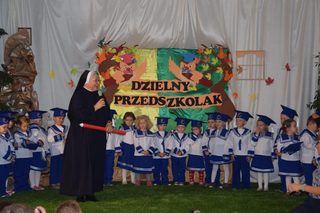 Jestem dzielnym Jezusowym Skrzatem – pasowanym przedszkolakiem     24 października 2017 r. odbyło się pasowanie na przedszkolaka grupy Jezusowe Skrzaty. Dzieci wraz z Siostrami i Panią Dominiką, długo przygotowywały się do tego wydarzenia.     Zaproszeni rodzice mieli przyjemność zobaczenia swoich pociech w przedstawieniu pt. „W Fatimie”, a także wysłuchania pięknych wierszyków oraz piosenek.